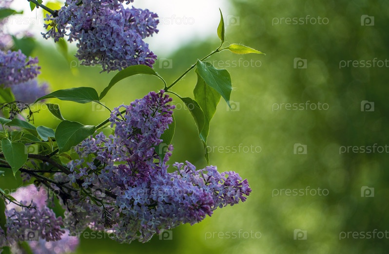 Ветви цветущей сирени крупным планом на зеленом фоне
