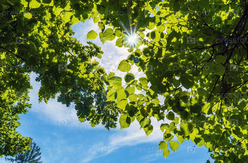 Солнце светит сквозь листву лип и дубов