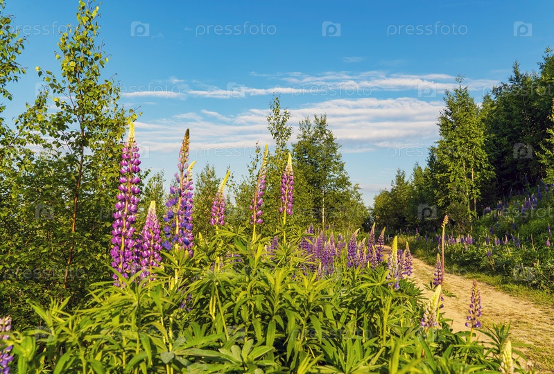Люпин многолистный зацветает в солнечный день