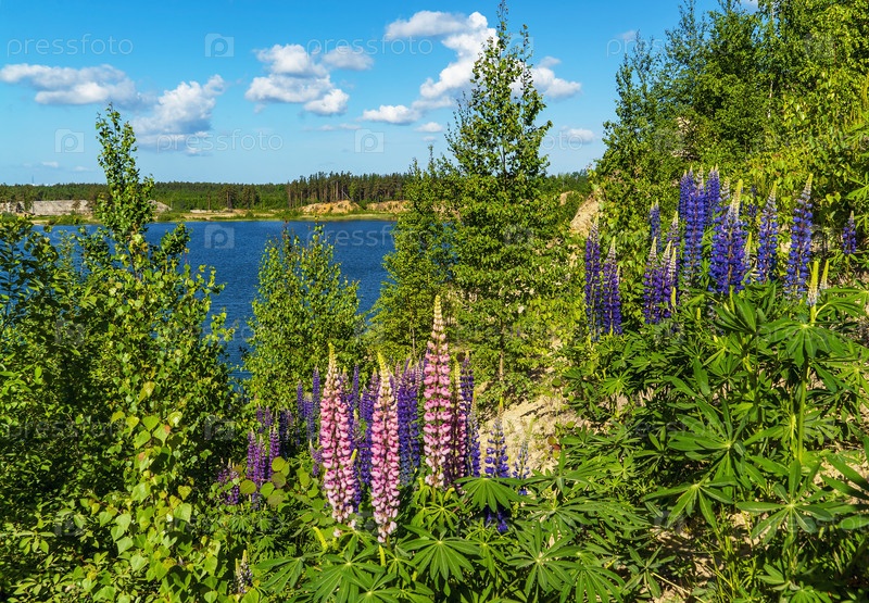 Люпин многолистный зацветает в солнечный день