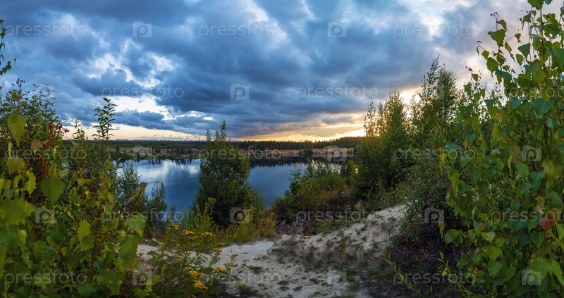 Закат в облачном небе над Пугоревским карьером. Всеволожск. Ленинградская область