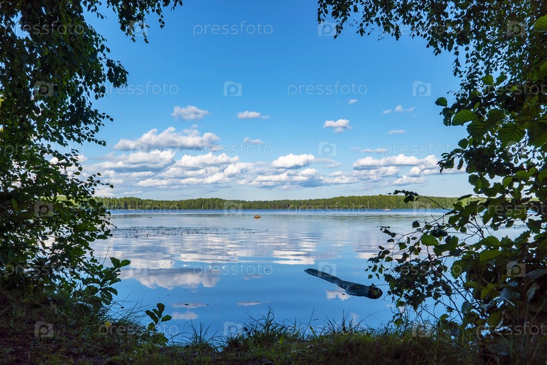 Облака отражаются в водной глади. Озеро большое. Всеволожск. Ленинградская область