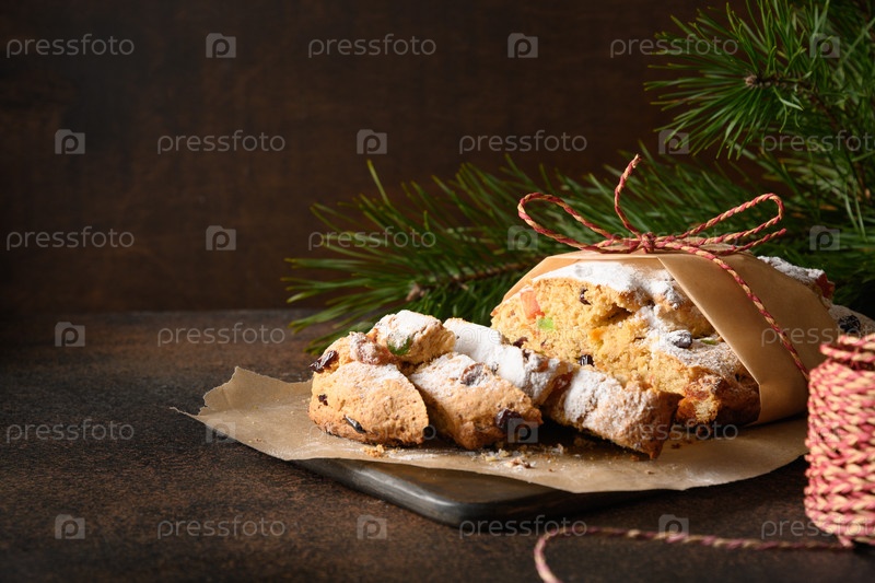 Рождественская вкусная украшенная праздничная веревка на коричневом столе. Скопируйте пространство