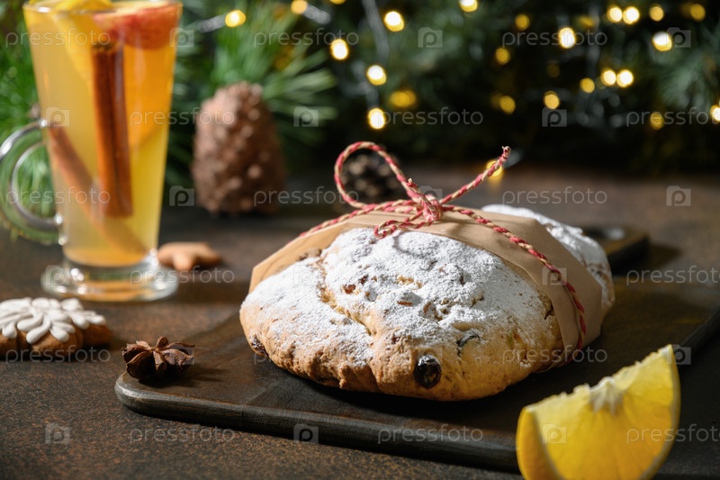 Рождественский столлен - традиционный немецкий хлеб на коричневом фоне