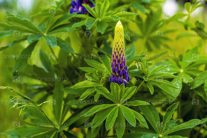 Фиолетовый цветок люпина крупным планом рано утром