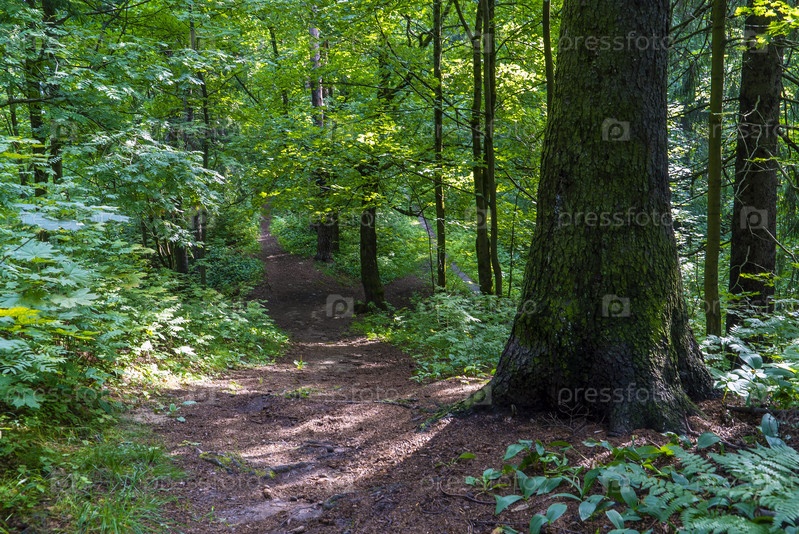 Ствол старой ели в лесу вдоль тропы. Всеволожск Ленинградской области