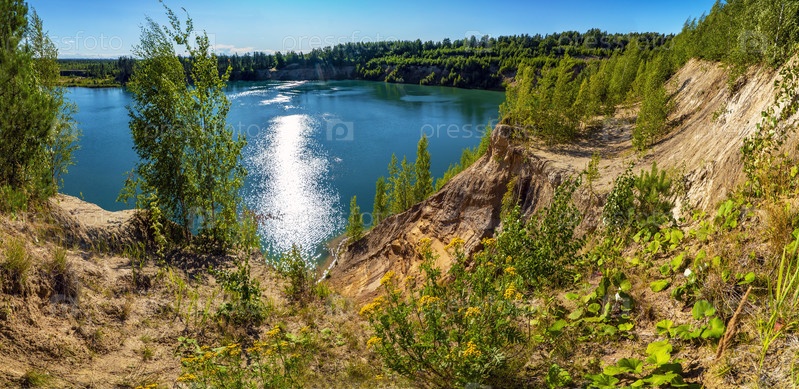 Солнечные блики на воде. Крутой берег водохранилища