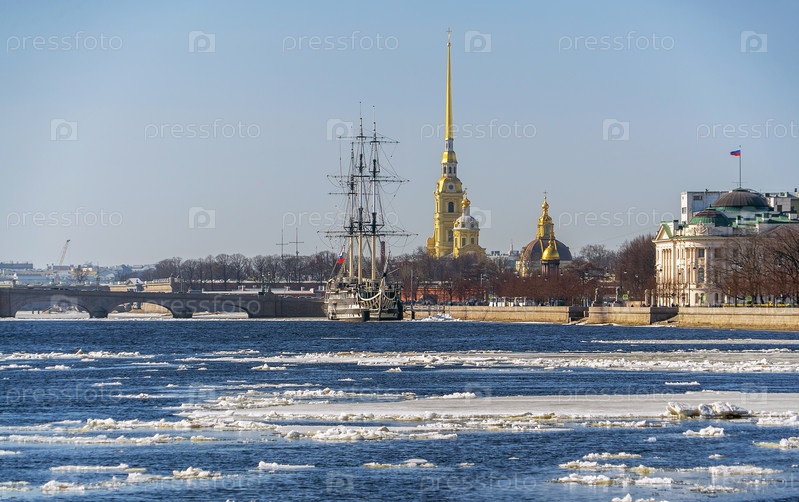 Весенний ледоход на Неве в Санкт-Петербурге