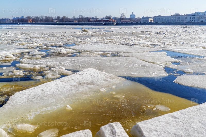 Весенний ледоход на Неве. Смольная набережная