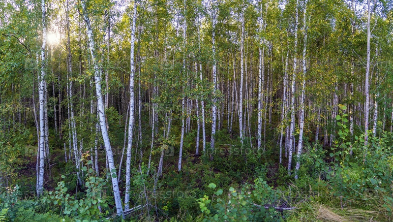 Высокие стволы берез. Березовая роща. Ленинградская область