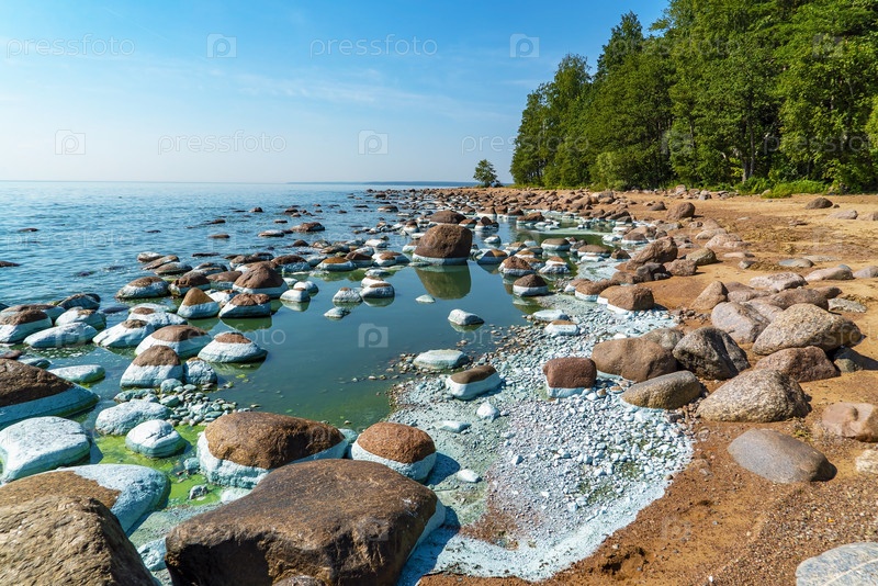 Цветение воды, сине-зеленые водоросли у берега Финского залива, Репино, Санкт-Петербург