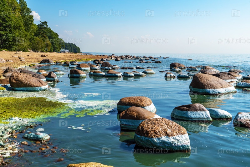 Цветение воды, сине-зеленые водоросли у берега Финского залива, Репино, Санкт-Петербург