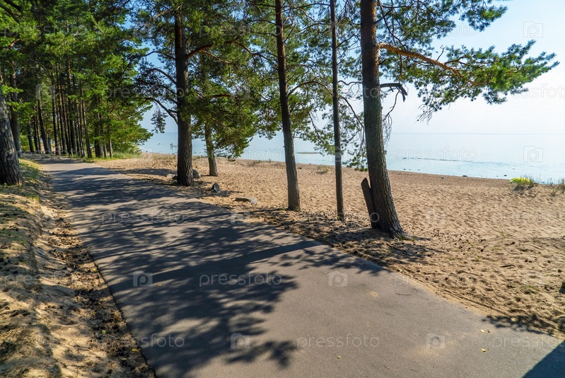 Асфальтовая дорожка вдоль побережья Финского залива у поселка Комарово. Санкт-Петербург