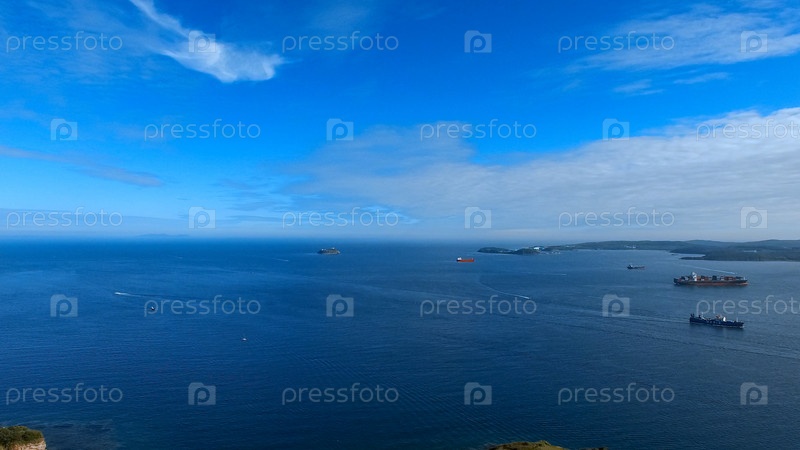 Морской пейзаж в проливе Босфор Восточный. Владивосток