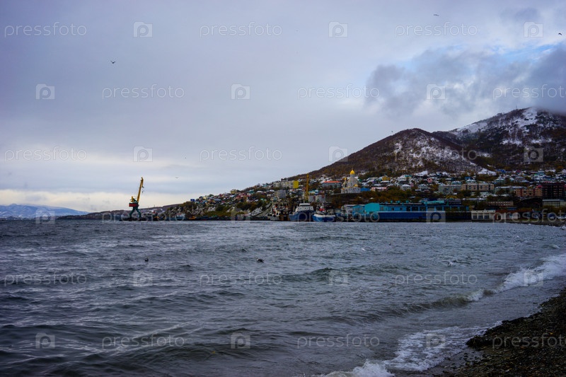 Морской пейзаж с видом на побережье Петропавловска-Камчатского, Россия
