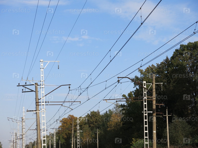 Железнодорожные столбы и вышки летом у подмосковной станции