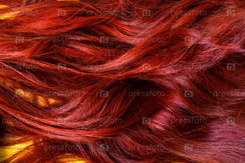 Окрашенная волнистая рыжая текстура волос. Полный фон кадра с копией пространства