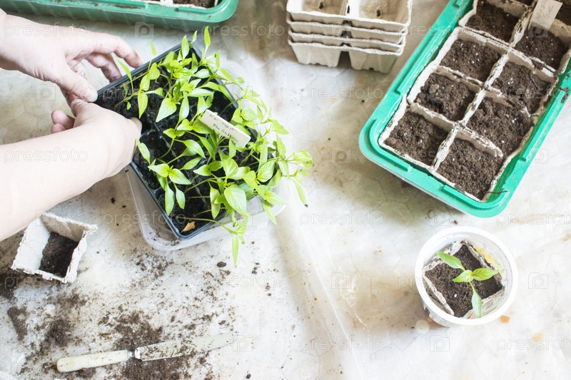 Посев саженцев, лотки с черным отверстием для сельскохозяйственной рассады. Весенняя посадка. Ранняя рассада, выращенная из семян в ящиках дома на подоконнике. концепция: плохой уход за растениями, сухоцветы