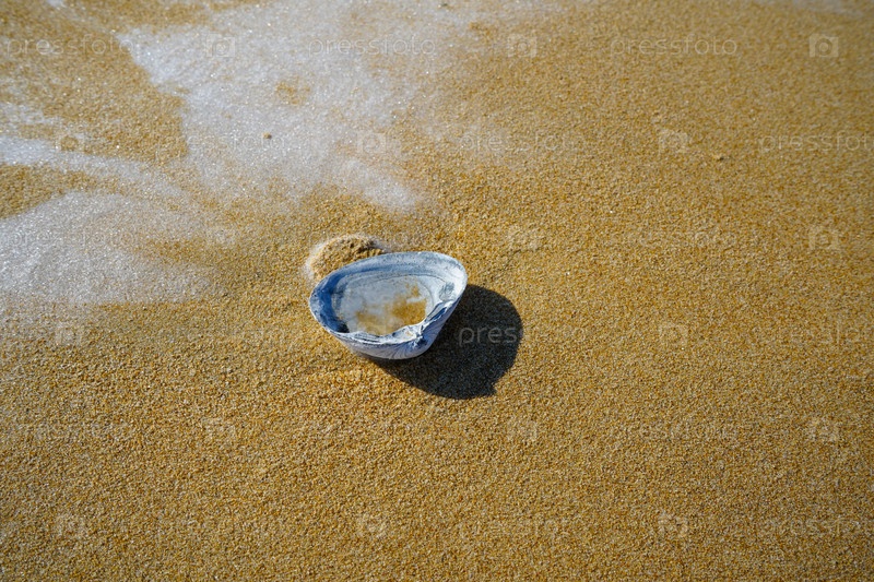 Естественный фон с ракушкой на песке