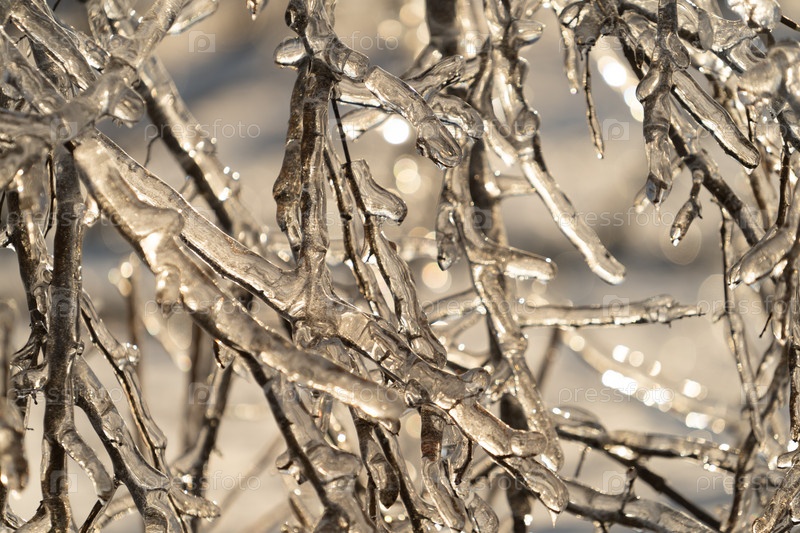 Естественный фон с кристаллами льда на растениях после ледяного дождя