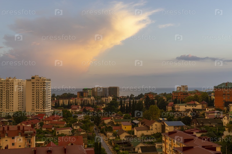 Городской пейзаж на фоне вечернего неба. Сочи, Россия