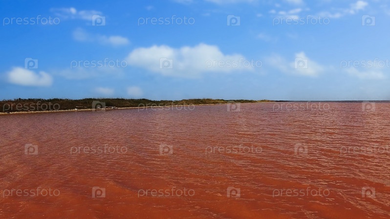 Вид с воздуха на розовое соленое озеро Сасык-Сиваш