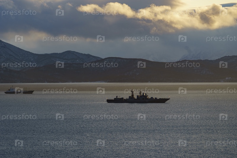 Морской пейзаж с кораблями в Авачинской бухте. Камчатка