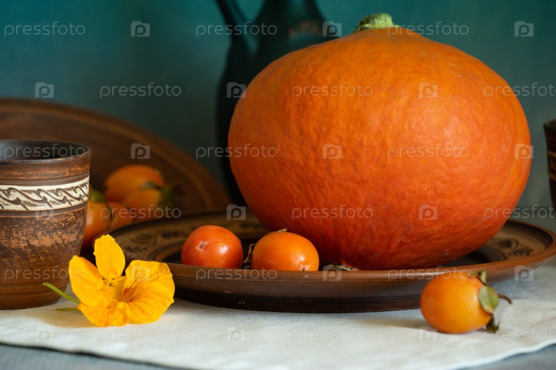Осенний натюрморт с цветами тыквы и настурции