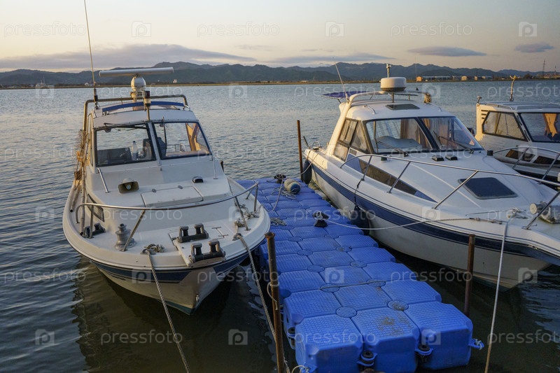 Морской пейзаж с видом на лодки у пирса
