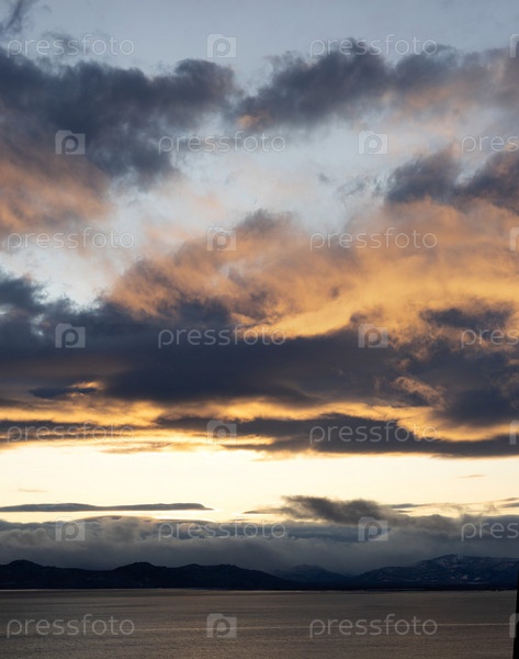 Морской пейзаж с красивым драматическим небом на закате