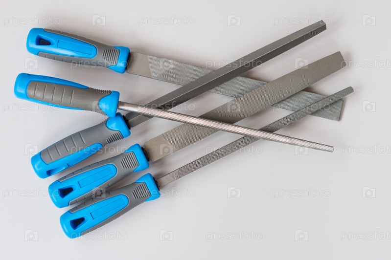 Набор новых файлов рашпиля на сером фоне. Расположение рабочих инструментов