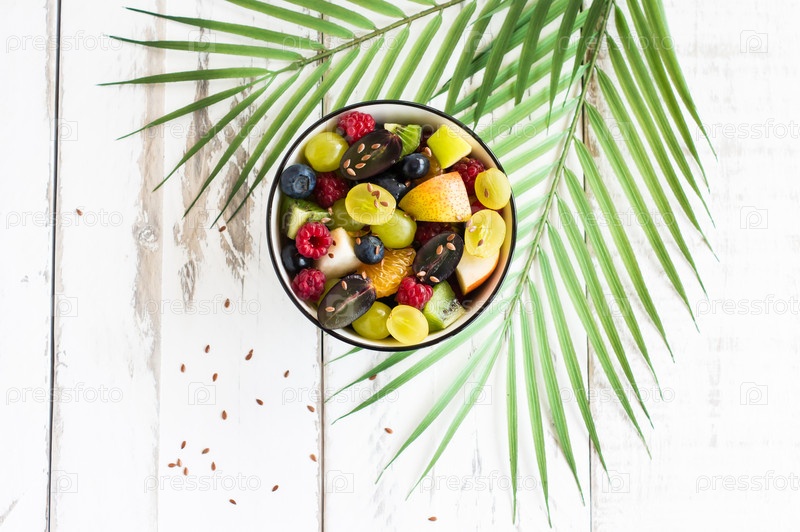 Диетический завтрак. фруктовый свлат с семенами льна. концепция вегетарианской пищи