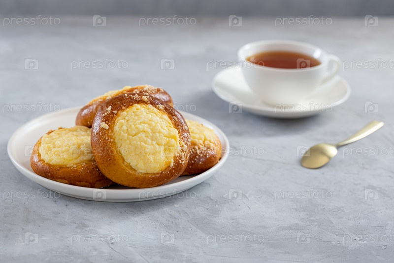 Чизкейк со штрейзелем на бетонном фоне, чаепитие с пирогами и джемом