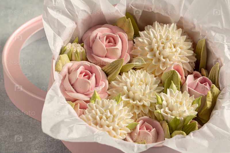 Домашний зефир в подарочной упаковке на светлом фоне, концепция праздника и необычные красивые подарки ручной работы