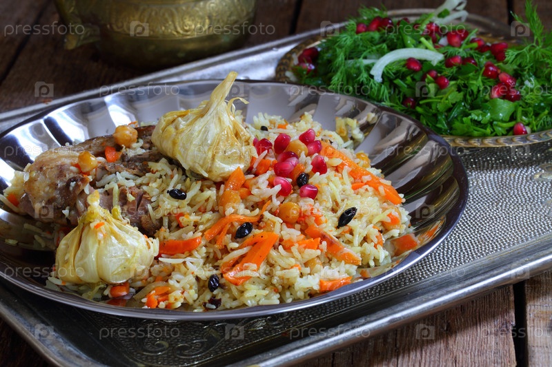 Узбекский плов из баранины с гранатом и лепешкой из тандыра