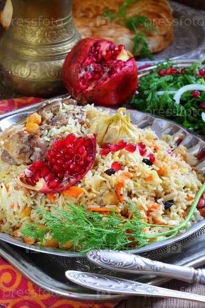 Узбекский плов из баранины с гранатом и лепешкой из тандыра