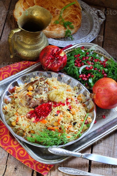 Узбекский плов из баранины с гранатом и лепешкой из тандыра