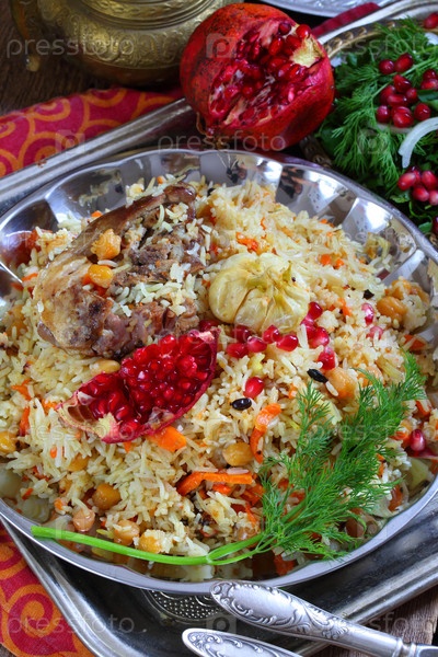 Узбекский плов из баранины с гранатом и лепешкой из тандыра