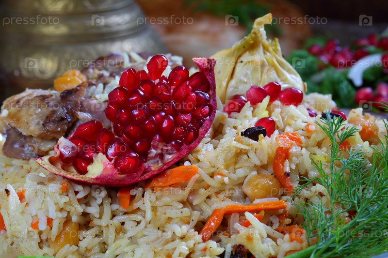 Узбекский плов из баранины с гранатом и лепешкой из тандыра