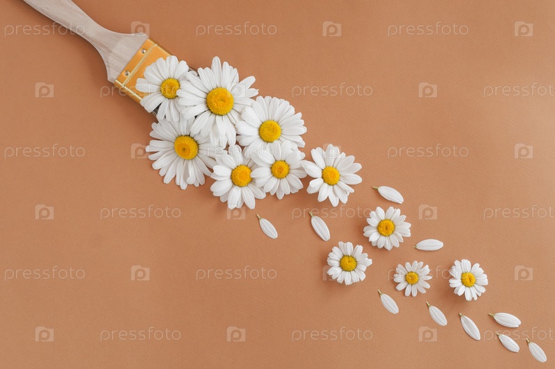 Цветочная кисть ромашки на бежевом фоне - концепция нетоксичной краски