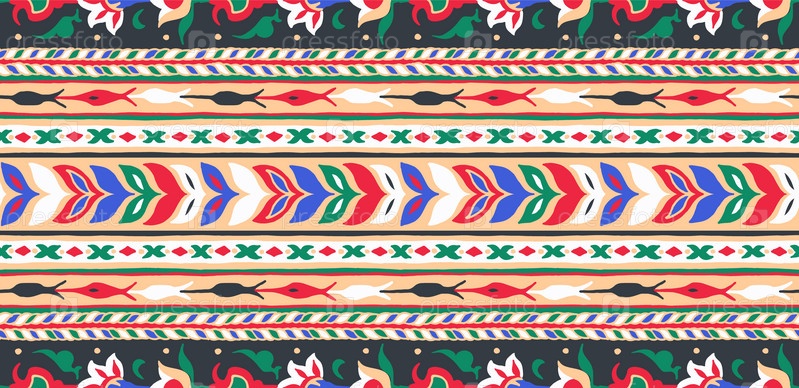 Геометрический фольклорный орнамент икат. Племенная этническая векторная текстура. Бесшовный полосатый узор в стиле ацтеков. Рисунок племенной вышивки. Индийский, скандинавский, цыганский, мексиканский, народный узор