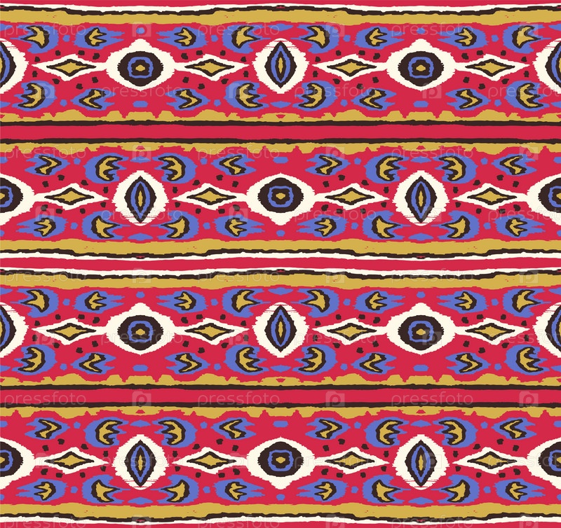 Икат геометрический фольклорный орнамент с бриллиантами. Племенная этническая векторная текстура. Бесшовный полосатый узор в стиле ацтеков. Народная вышивка. Индийский, скандинавский, цыганский, мексиканский, африканский ковер
