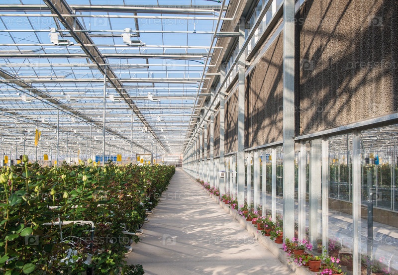 Оранжерея с розовыми цветами