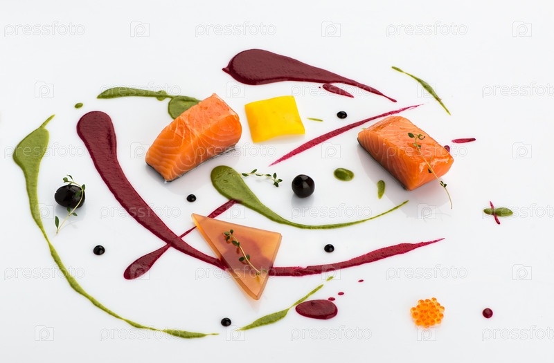 Декоративно украшенная еда на белом