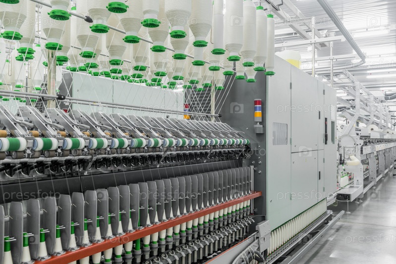 Катушки с нитками на текстильной фабрике