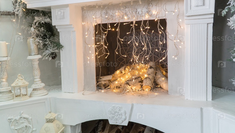 Рождественский камин с огнями