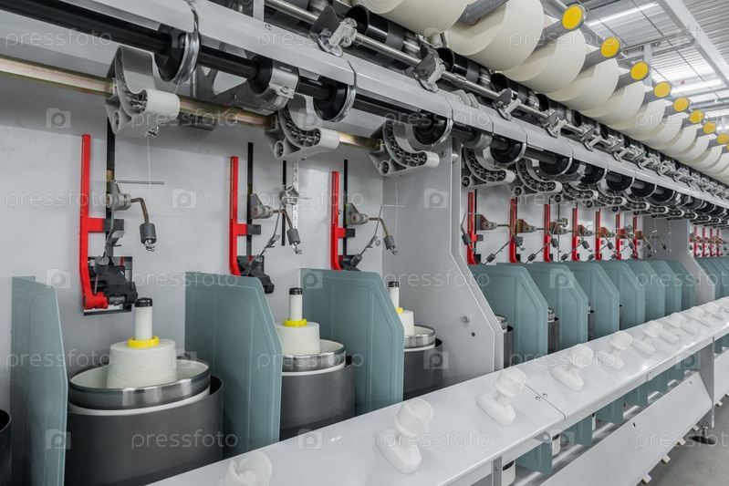 Катушки с нитками на текстильной фабрике
