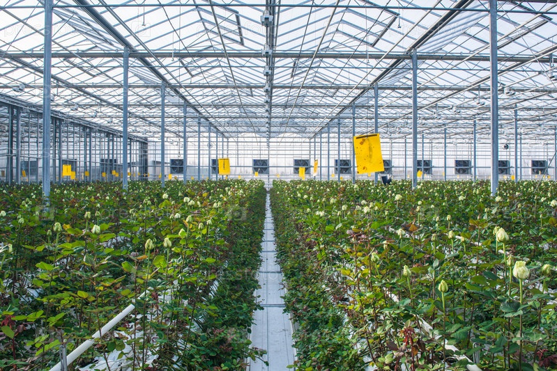 Оранжерея с розовыми цветами
