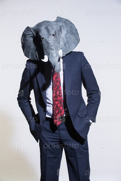Мужчина в маске слона на светлом фоне