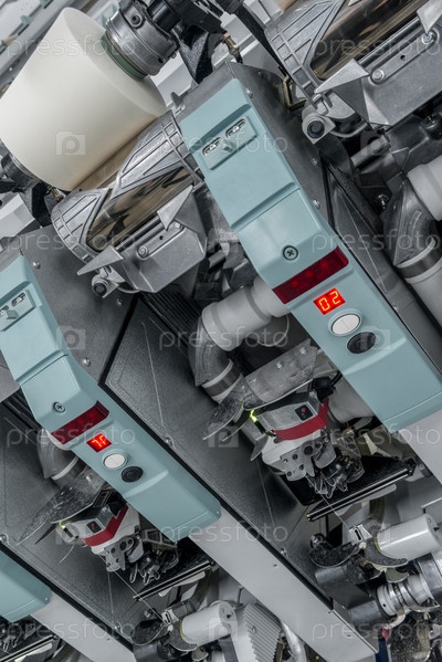 Катушки с нитками на текстильной фабрике